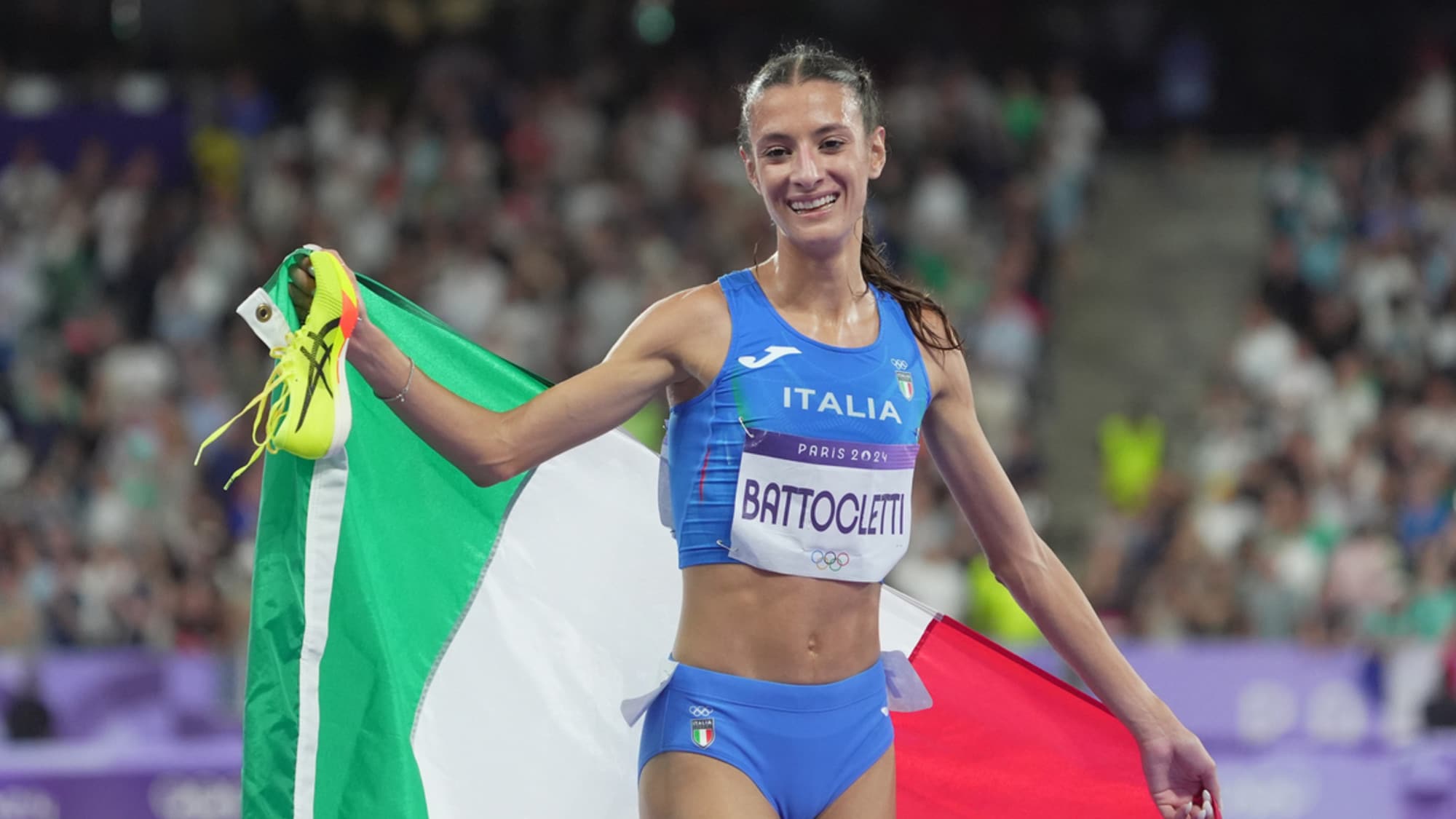 Immensa Nadia Battocletti, medaglia d’argento olimpica nei 10000 metri: tutto il mondo corre e questo risultato vale più della maggior parte degli ori, anche della stessa atletica. Dopo il quasi bronzo nei 5000, la sua vera gara pur essendo campionessa d’Europa anche sui 10000, la mezzofondista trentina ha retto senza problemi il ritmo delle africane. Cosa che in una gara tattica ci può anche stare, per quelle forti come la Battocletti, ma straordinaria è stata la sua reazione allo strappo violento dato a un giro dalla fine: sia a livello di passo sia di scelta tattica, tenendo coraggiosamente l’interno nonostante il rischio di prendersi una scarpata. Tutti si aspettavano la solita volatona Kenya-Etopia, con inserimento magari della Hassan, ma la Battocletti si è ribellata al copione e per qualche metro ha addirittura fatto paura alla Chebet per l’oro, chiudendo con un 30'43"35 che migliora di quasi 8 secondi il suo stesso record italiano stabilito agli Europei di Roma (e la stessa cosa aveva fatto con il rtecord dei 5000). Una medaglia da pelle d’oca, la quarta olimpica della storia per una mezzofondista italiana dopo quelle di Paola Pigni, Gabriella Dorio (che lì allo Stade de France l’ha abbracciata) e Roberta Brunet. È già qualcosa di grande, e forse l’inizio di qualcosa di grandissimo.