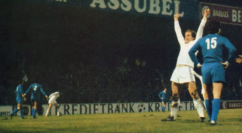 Cari amici, eccoci ad una nuova puntata del Guerin Quiz. Se riconoscete la gara della foto, scrivetelo nei commenti indicando squadre, risultato e stagione. Appuntamento a martedì con i commenti. Buon fine settimana. AGGIORNAMENTO DEL 21 MARZO Siamo agli ottavi della Coppa Campioni 1981-82 e quella della foto è Anderlecht-Juventus 3-1. Come sempre, i lettori sono stati bravissimi a risolvere l’enigma. Ecco i vincitori di giornata: Jeffrey Barbara, Nospeech («Nella foto ecco esultare Willy Geurts che con una fortunata carambola sul tentativo di Scirea di rinviare il pallone su un’azione pericolosa dei belgi, batte Zoff riportando in vantaggio l’Anderlecht dopo un quarto d’ora nella ripresa. Lo stesso Geurts con un imperioso stacco di testa su corner aveva sbloccato il risultato, mentre Marocchino pareggiava ribadendo in rete una corta respinta di Munaron su diagonale di Tardelli. Vercauteren, sempre su azione d’angolo, chiude i giochi a tre minuti dal termine»), Rosario («Al ritorno, 1-1 a Torino - ancora Geurts e pareggio di Brio - e Juve eliminata. Stessa sorte che toccherà in semifinale ai biancomalva a opera dei futuri campioni d’Europa dell’Aston Villa, vittoriosi sul Bayern Monaco per 1-0 nella finale di Rotterdam»), Emiliano Spennato («In foto col numero 15 il futuro allenatore della nazionale Cesare Prandelli»), Giulio Mosna («In quella stagione, la prima con la maglia sponsorizzata Ariston, i bianconeri di Giovanni Trapattoni conquisteranno il campionato della seconda stella, grazie anche al rigore di Liam Brady nell’ultima giornata contro il Catanzaro. L’allenatore dei belgi era l’allora jugoslavo Tomislav Ivić, allenatore dell’Avellino nella stagione 1985-86, detentore del record di otto titoli vinti in sei nazioni differenti»), Massimiliano Camisa, Andrea Pavoni, Alberto («Questa partita viene menzionata nel film “Eccezziunale veramente” dove un grande Diego Abatantuono, nella la parte del camionista Tirzan, sfegatato tifoso juventino, fa del tutto per poter andare a vedere la gara in Belgio ma, arrivato a Parigi, gliene succedono di tutti i colori… Ma questa è un’altra storia!»), Giuseppe, Federico65 («Fu un turno fallimentare per le squadre italiane in quanto anche Inter e Roma vennero eliminate rispettivamente da Dinamo Bucarest e Porto, cosicchè a novembre l’Italia non aveva più nessuna rappresentante nelle competizioni europee. La Juventus si rifarà vincendo lo scudetto dopo un entusiasmante e polemico testa a testa con la Fiorentina, mentre l’estate si tingerà di azzurro con il trionfo della nazionale di Bearzot al Mundial spagnolo»), Max Pandini, Enrico, Rossano Pistelli («Tra i vari giocatori di rilievo dell’Anderlecht, si ricordano Munaron, Olsen, Vercauteren, Brylle e il fantasista Lozano»), Marco Benecchi («Un quiz “facile”, dopo una serie ostica e agnostica, che ha dimezzato il gruppo di testa»), Andrea Bottioni, Di Rosa Marcello («A vincere la coppa sarà per il sesto anno consecutivo una squadra inglese , l’Aston Villa che all’esordio della manifestazione supera nella finale giocata a Rotterdam il più blasonato Bayern Monaco»), Francesco («I cartelloni sullo sfondo e l’ambientazione notturna fanno capire che si tratta di un mercoledì europeo»), Paolo Longherese, Gabry («La Juventus di quei tempi giocava spesso con la maglia blu in trasferta: una veloce ricerca su Youtube mi ha portato ad individuare nei belgi dell’Anderlecht gli avversari»), Dadde, Denis Buzzoni (che ci dà altri ragguagli sul film “Eccezziunale veramente”: «La partita è citata durante la scena nel commissariato parigino, quando Tirzan - parte juventina del film - chiede all’ufficiale di polizia un televisore per vedere questa partita in quanto impossibilitato a recarsi a Bruxelles causa furto del camion»), Antognoni2007, Roberto Branchi, Davide Roscio, Armando Fantera, Giuseppe Pizzuti («In quella stagione la Juventus sarà Campione d’Italia, mentre andranno in B, aggiungendosi al Como, anche le “nobili” Milan e Bologna, quest’ultimo mai retrocesso fino a quel momento»), Fabio Giacomo Cobianchi («La seconda maglia blu è quasi identica a quella della stagione precedente. I bordi del colletto - sempre aperto - e delle maniche sono bianconeri. Il logo dello sponsor tecnico kappa è bianco. La differenza è nello scudetto e nella comparsa, sul petto, dello sponsor Ariston»), Giancarlo Branelli («Al ritorno al “Comunale” si capisce subito che la serata per la Juve non sarà delle più felici: gli uomini di Trapattoni partono di gran carriera e dopo pochi minuti Bettega colpisce il palo con un colpo di testa che ha già superato il portiere dell’Anderlecht. Alla mezz’ora, poi, il patatrac, quando lo stesso Bettega si rompe il legamento collaterale del ginocchio sinistro in uno scontro fortuito col portiere belga Munaron; sarà costretto a un lungo stop, perdendo il trionfo mondiale di Spagna ’82. La Juventus, condizionata da questa perdita, subisce il gol di Geurts su punizione. Demotivati e sfiduciati, i bianconeri pareggiano con Brio, ma ormai la qualificazione ha preso la strada del Belgio»), Fabrizio Perego, Carmine di Orta di Atella («Dopo avermi fatto impazzire credendo che quello in maglia bianca fosse Klinsmann, finalmente trovo l’arcano e individuo la partita corretta»), Stooge70 («I cartelli inizialmente localizzerebbero la partita in Germania, poi una veloce ricerca si scopre che la Assubel era una assicurazione/banca belga»), EB, Diego BN, Stefano («La partita è riconoscibile per lo stadio Emile Versé – Parc Astrid, dal 1983 rinominato “Constant Vanden Stock”, storico ex giocatore, allenatore e poi presidente del club, per l’atmosfera notturna, tipica delle gare europee, per le divise delle due squadre e per il volto chiaramente distinguibile di Geurts»), Gianfranco Fabian, Bassani Denis, Sottino78, Paolo Abelli, MarcelloS., LukeGaz, Alessandro Barbarini e Gi